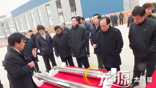 2012年12月11日,市委書記王愛民率邢臺市項目建設(shè)觀摩團(tuán)一行近200人到光源太陽能新廠區(qū)中高溫?zé)崂卯a(chǎn)業(yè)化項目基地觀摩考察。