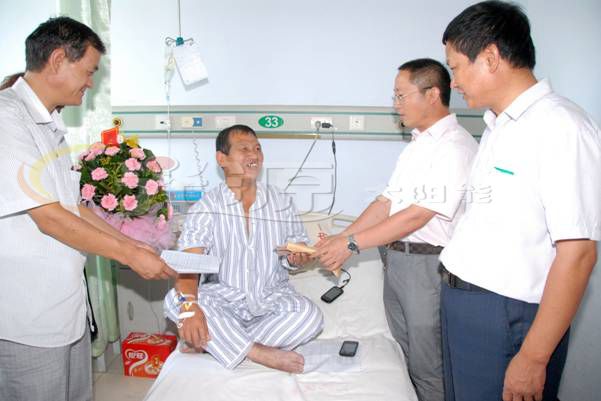 倡議書隨即引起了全體同事的高度關(guān)注,公司領(lǐng)導(dǎo)帶頭,廣大員工踴躍參與,紛紛主動(dòng)捐款,全體員工用點(diǎn)滴仁愛之心,向達(dá)師傅傳遞了一份生命的熱度,譜寫了光源人互助互愛的贊歌。8月15日上午公司領(lǐng)導(dǎo)買來花籃、水果和募集到的近2萬元善款到醫(yī)院看望病中的達(dá)師傅,并鼓勵(lì)他用積極的心態(tài)戰(zhàn)勝病魔,早日康復(fù)!