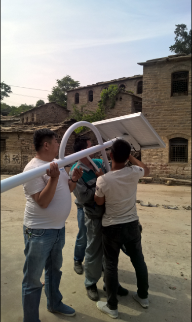 我們的同事們頂著著午間大太陽,積極為村民安裝太陽能路燈。