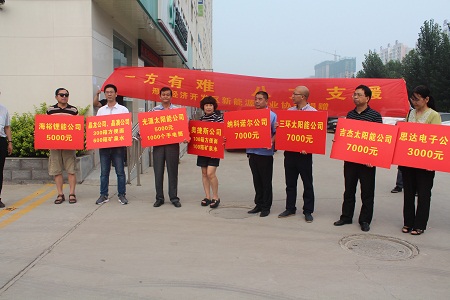 洪災(zāi)無情人有情。地處邢臺(tái)經(jīng)濟(jì)開發(fā)區(qū)的光源太陽能科技有限公司一方面做好自我防汛抗汛工作,一方面向邢臺(tái)經(jīng)濟(jì)開發(fā)區(qū)災(zāi)民捐款捐物,幫助受災(zāi)群眾渡過難關(guān)。