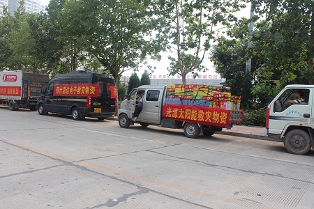 7月25日上午,一輛載滿(mǎn)救災(zāi)物資的貨車(chē)駛?cè)胄吓_(tái)經(jīng)濟(jì)開(kāi)發(fā)區(qū)王快鎮(zhèn)政府,車(chē)上裝有100箱方便面和100箱礦泉水,車(chē)廂兩側(cè)懸掛著‘光源太陽(yáng)能公司救災(zāi)物資’的條幅。這已是光源太陽(yáng)能公司繼7月23日向邢臺(tái)災(zāi)區(qū)捐助價(jià)值25000元款物之后,第二次向邢臺(tái)災(zāi)區(qū)捐助救災(zāi)物資,此次捐助的救災(zāi)物資合計(jì)價(jià)值10000元。