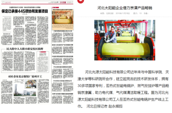 日北京日報刊登了河北光源科技有限公司助力京津冀清潔取暖的消息。