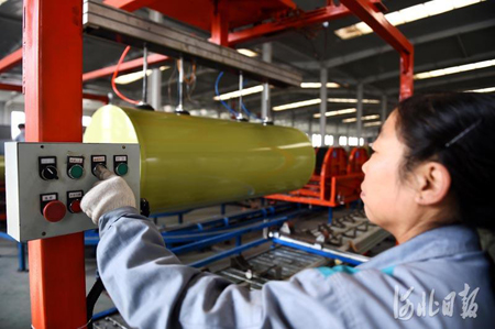 11月10日,河北光源太陽(yáng)能科技有限公司工人在蓄熱式智能電鍋爐生產(chǎn)線上忙碌。