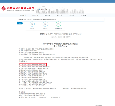 "煤改氣"是當下我國政府在改善空氣質量的民生重點工程,各地區(qū)政府在項目招投標的過程中對產(chǎn)品能效、品牌實力和售后服務進行嚴格篩選,只有在市場表現(xiàn)上品質最可靠、運行最穩(wěn)定、服務最專業(yè)的產(chǎn)品方能入圍。光源公司在2020年寧晉縣“氣代煤”壁掛爐采購安裝項目招標中以第一候選人:河北光源太陽能科技有限公司優(yōu)異成績拔得頭籌。